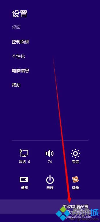 2、在弹出的新界面,选择下方的“更改电脑设置”;